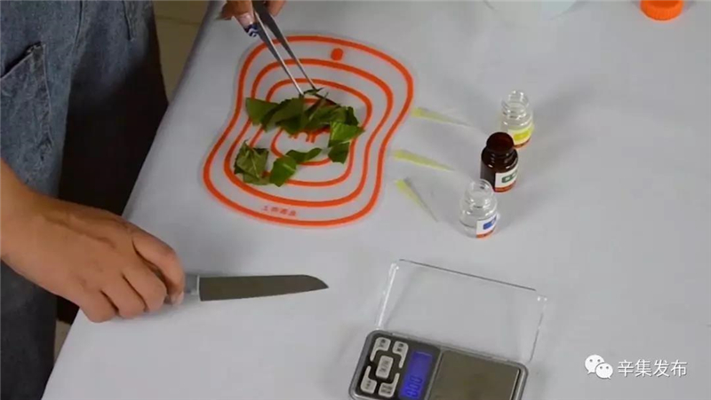 檢測過程也十分簡便:只要稱取2.0g樣品(約1cm見方)放入樣品杯中,加入顯色劑,靜置10分鐘后即可觀察到結(jié)果。